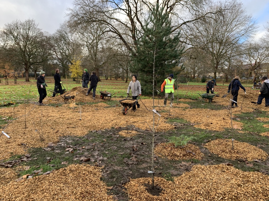 • On 13 December MUG did winter tree planting with the Tree Musketeers in the cricket field. Elms, oaks, rowans, wild cherries, and a sweet chestnut were planted at the north end (along the side of Chatsworth Road and Lea Bridge Road). More than 80 volunteers turned up to help during the day and the weather was glorious.